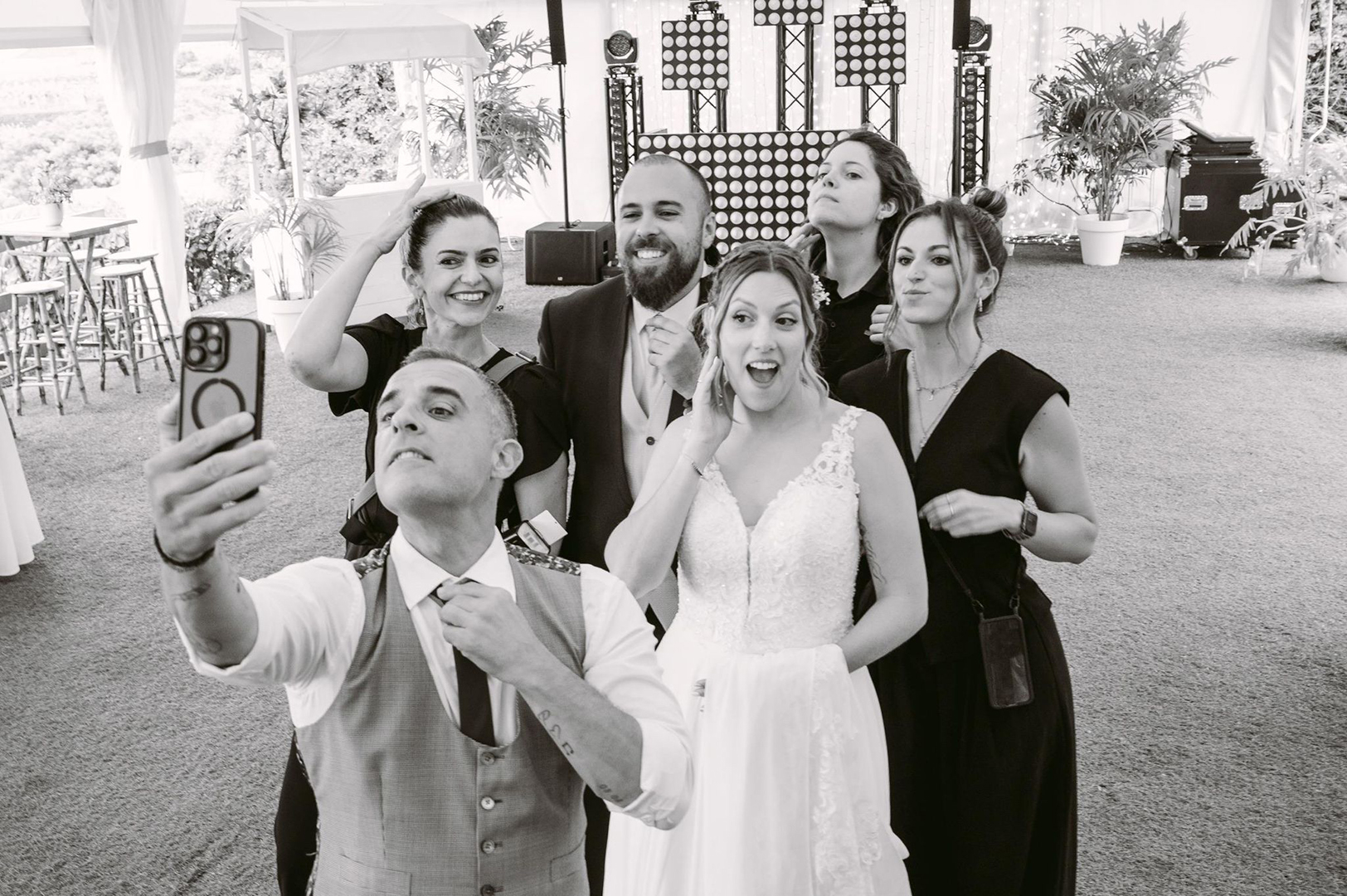 Todavía estamos intentando asimilar la «tremenda gozadera» que montaste este sábado en nuestra boda, y, no solo lo decimos nosotros, sino cada invitado que disfrutó, saltó, bailó y sudó con cada tema que hacías sonar de una manera única. No paran de llegarnos mensajes diciendo que lo que sucedió allí no fue una boda, ¡fue un festival! Desde la primera reunión a la última, tenías claro lo que queríamos y el nivel de implicación que tuviste desde conseguir un tema para el «first dance» hasta hacer a Fran pinchar y a mi rapear demuestra, no solo el gran profesional que hay detrás de Ronny Díaz, sino que fuiste el pilar de nuestra fiesta.